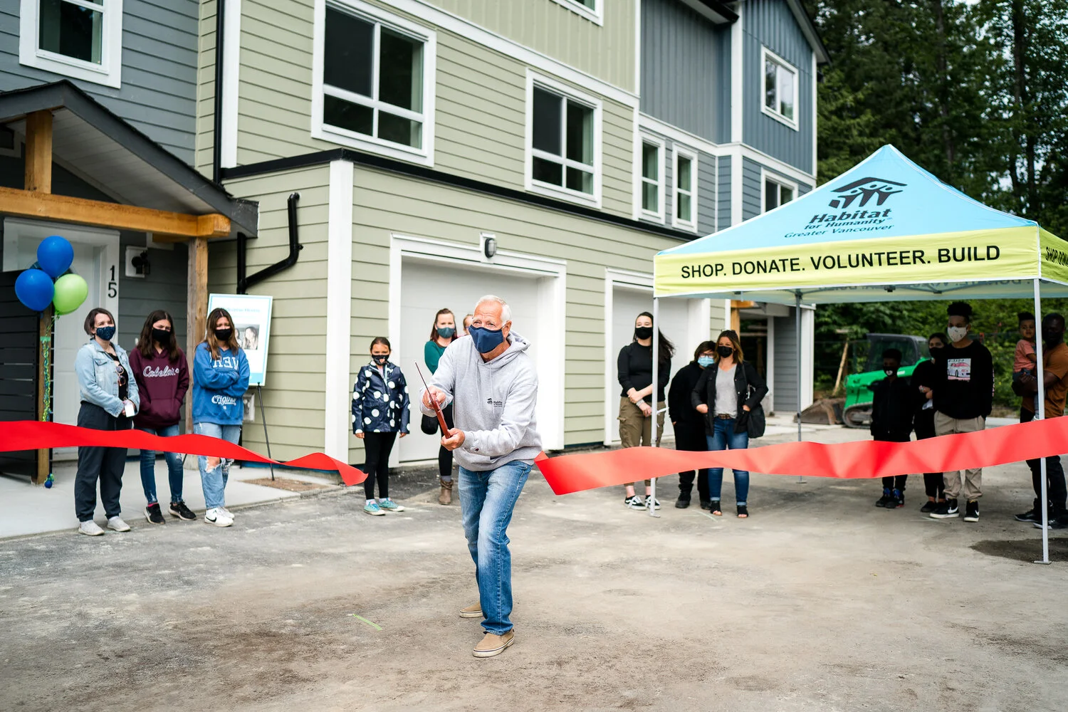 As our families began arriving onsite in Mission to prepare for the day, you could hear the hum of exuberant chatter as neighbours began getting to know one another. The tweens and teens quickly figured out who they would be attending school with in the Fall, hopefully secure in the knowledge they wouldn’t be the only “new kids”. While the cameras rolled, keys were handed out, the ribbon was cut, and all the families huddled outside their doors, anxious to take the first peek.